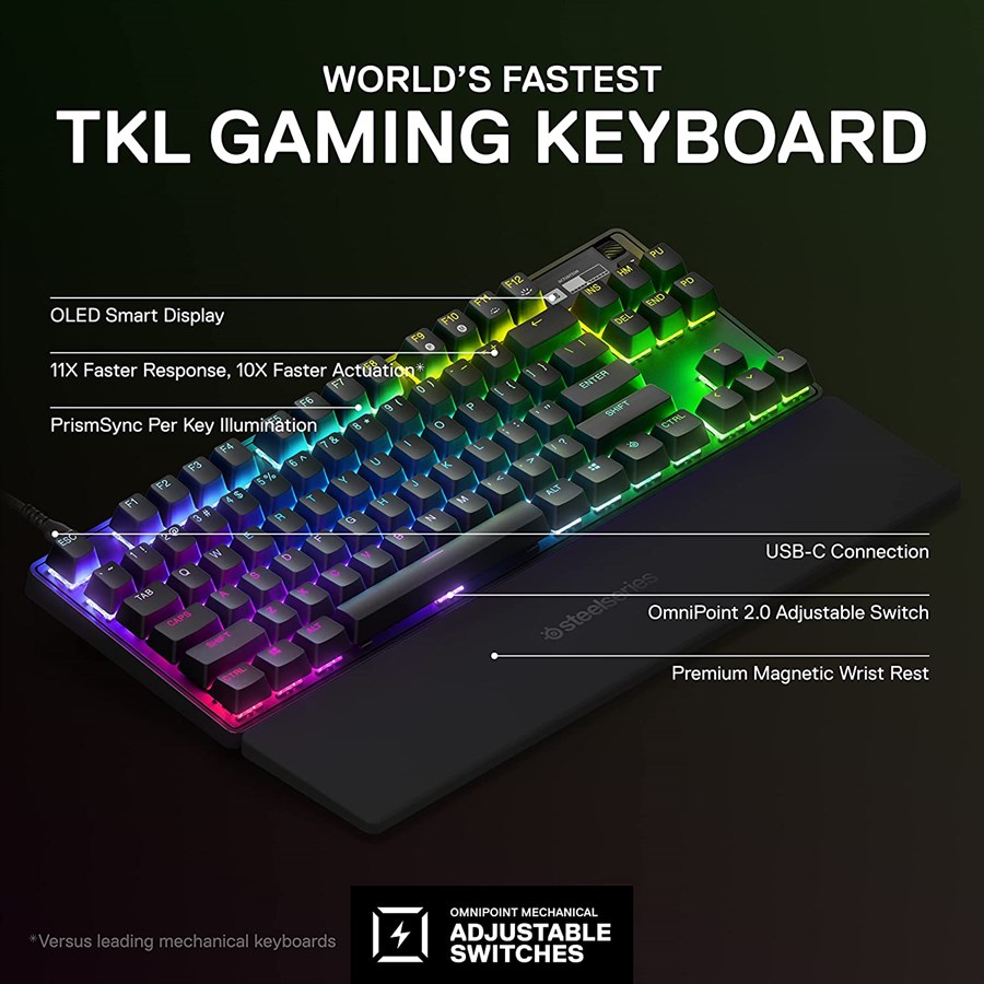 SteelSeries Apex Pro TKL (2023) - Tenkeyless Esports Wired Gaming Keyboard | OmniPoint 2.0 Adjustable Switches | US English | 64856