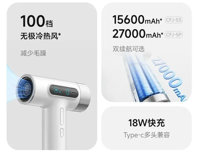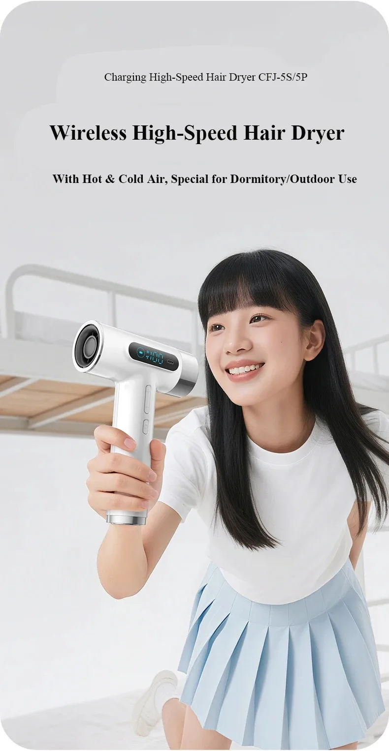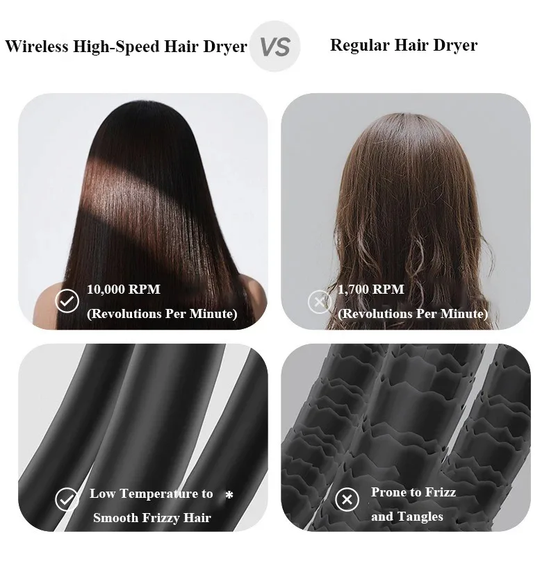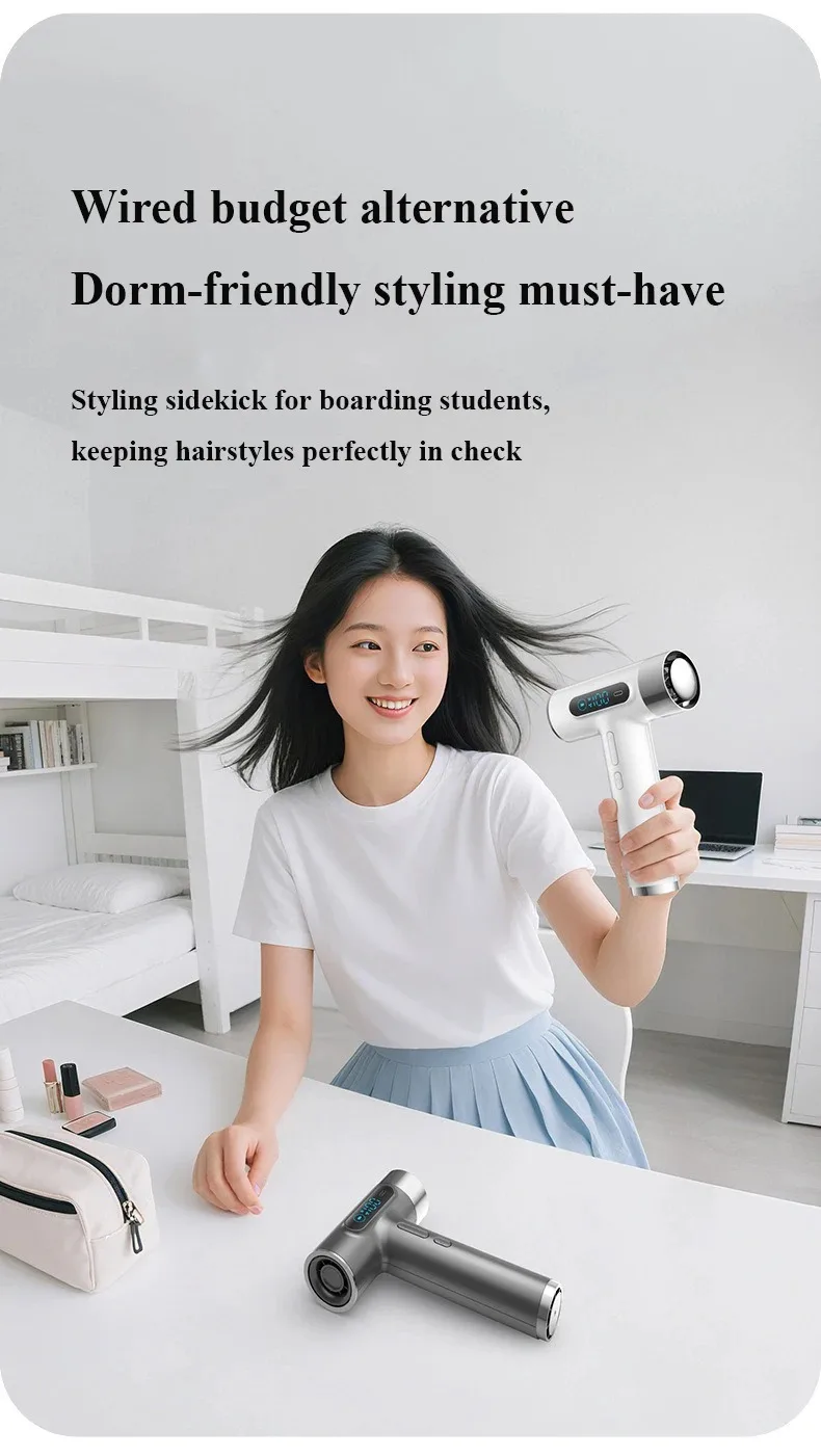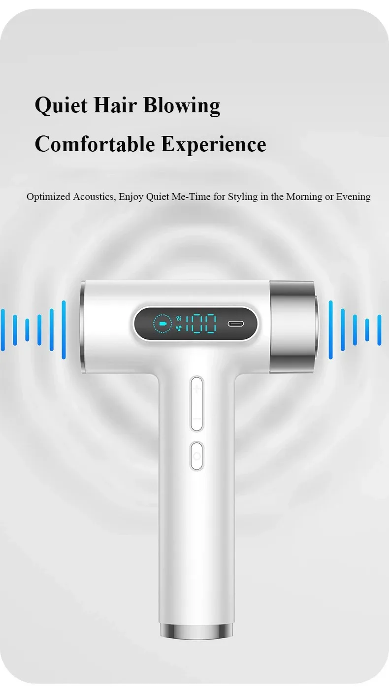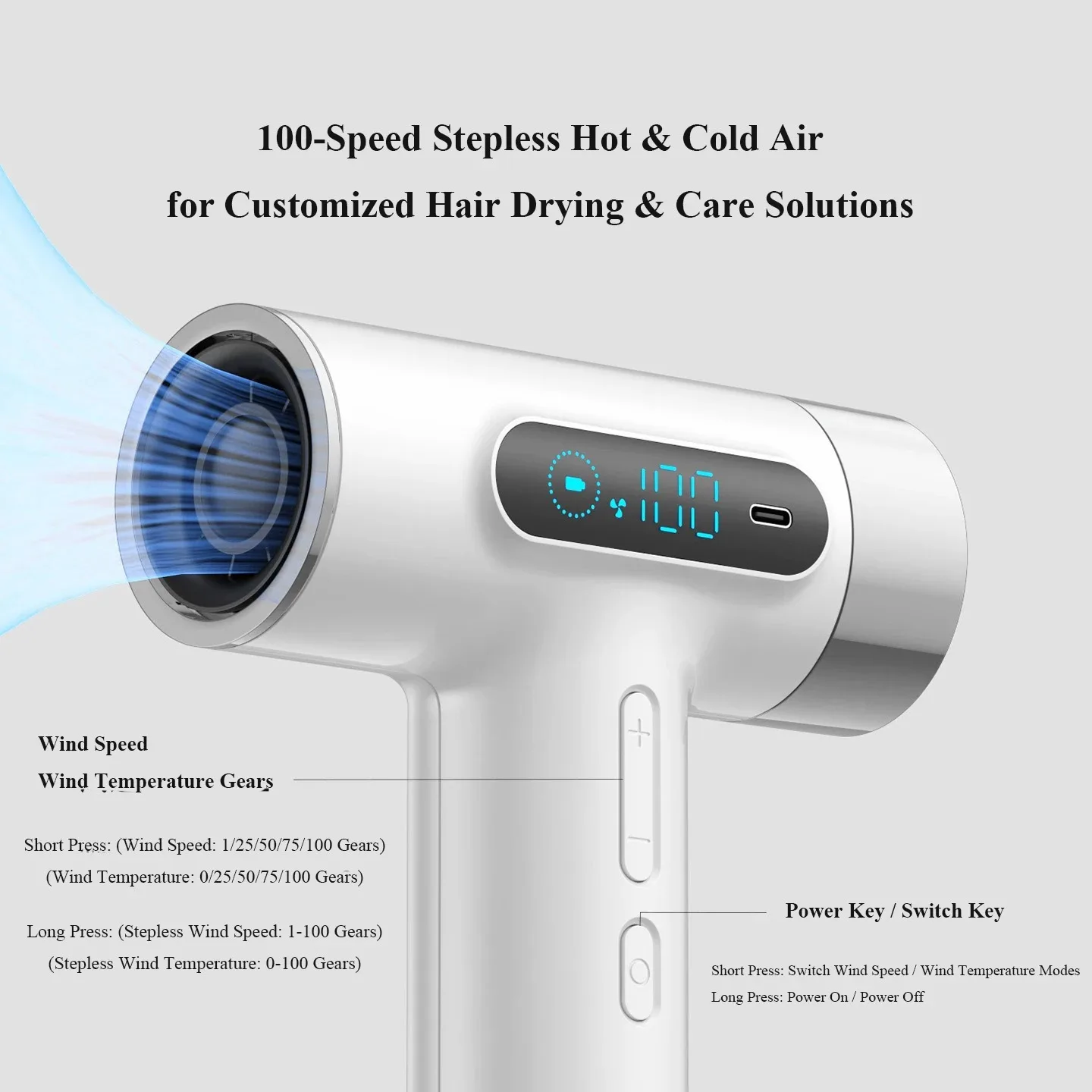 Purilite Select Super Portable USB Charging Wireless Hair Dryer – 100,000 RPM, Hot/Cold Air, LED Display, 100 Gears, High-Speed Styling Tool