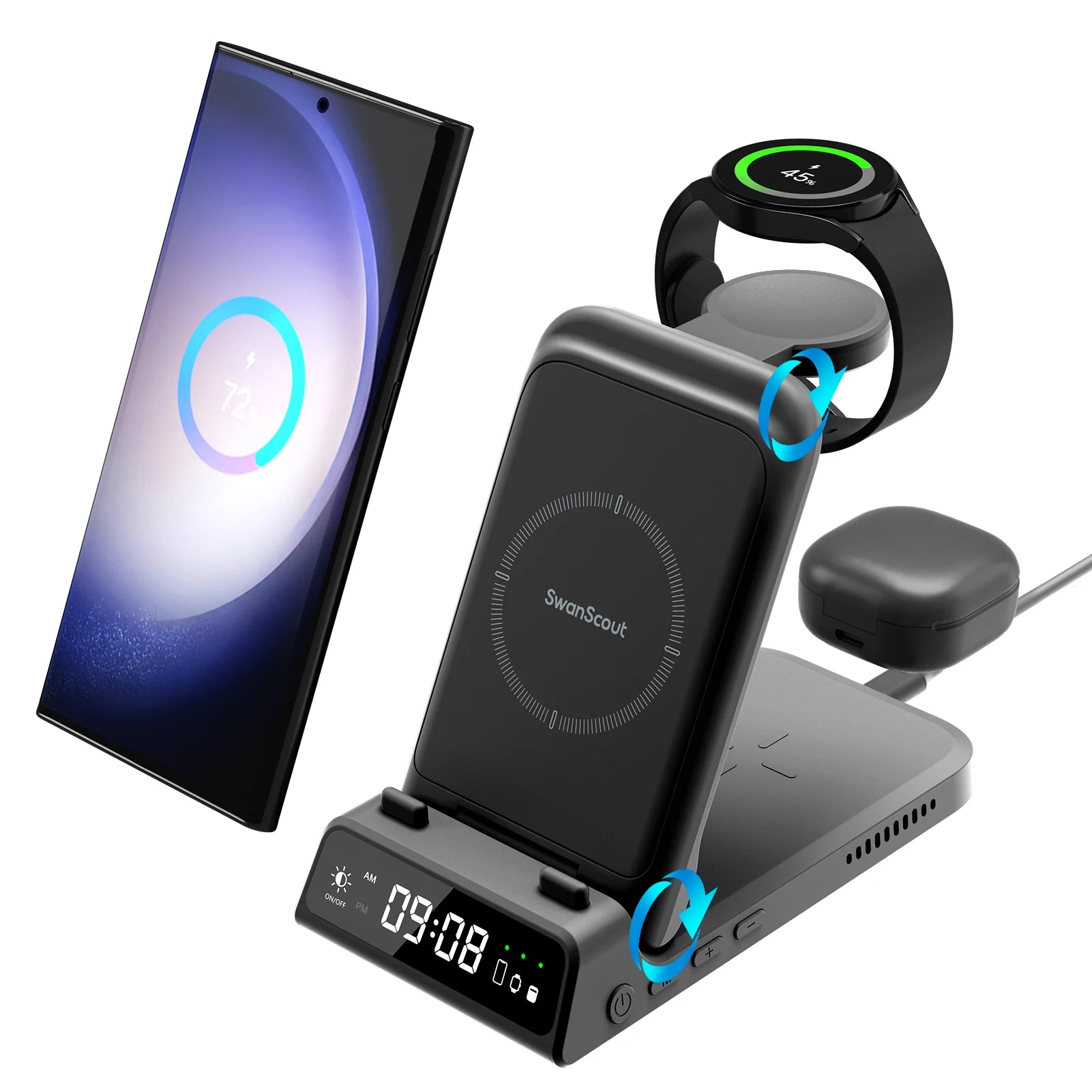 Purilite Select 703S Wireless Charger – Charging Station for Samsung S25 Ultra, S24, Z Fold 7, Z Flip 7, Galaxy Watch 8/7 & Buds 3 Pro
