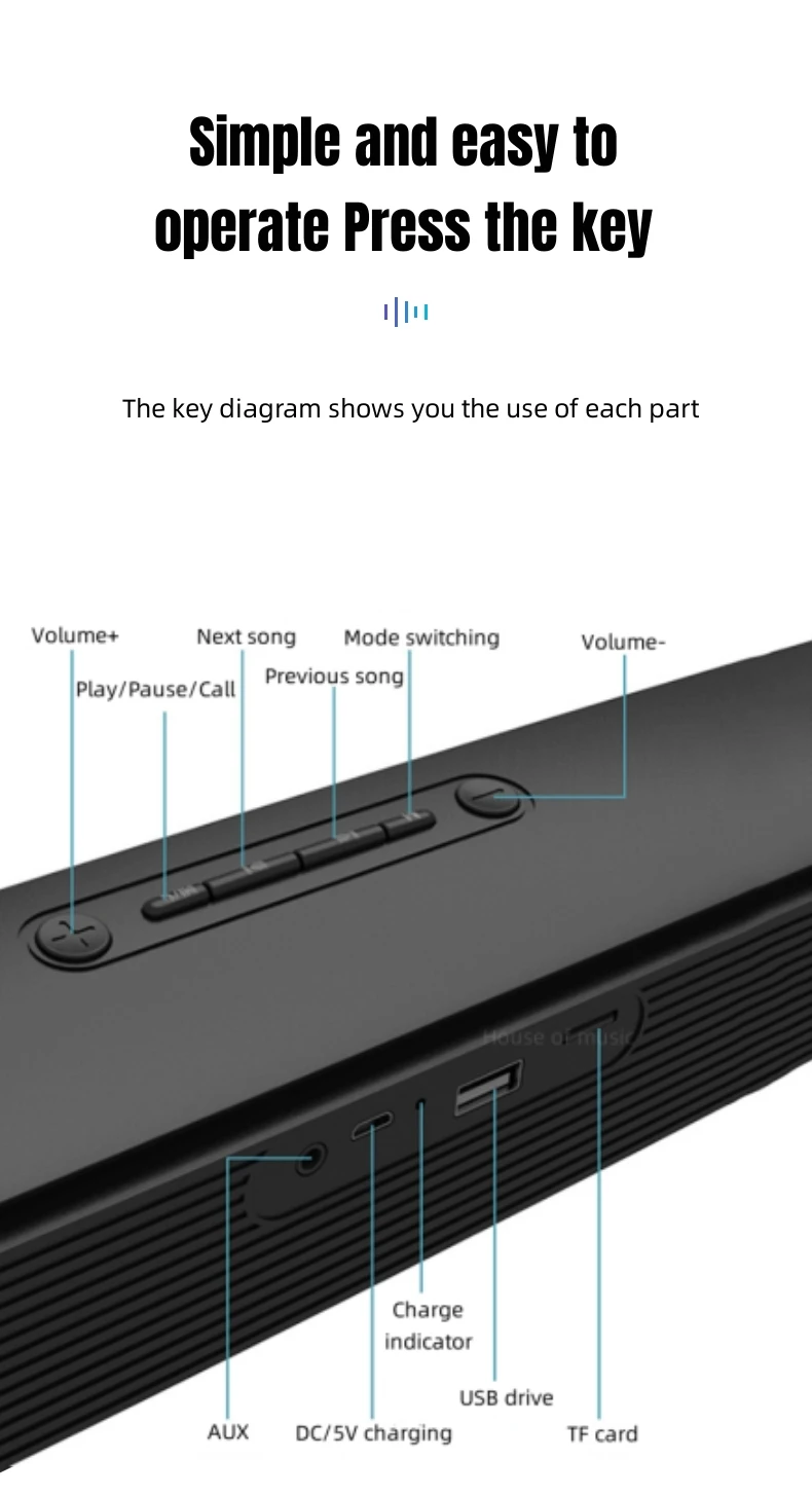 Whether you're watching movies, gaming, or enjoying music outdoors, this speaker supports Bluetooth 5.0, USB, AUX, and MP3 playback, giving you multiple connectivity options. Lightweight and easy to carry, it’s ideal for both indoor and outdoor entertainment.