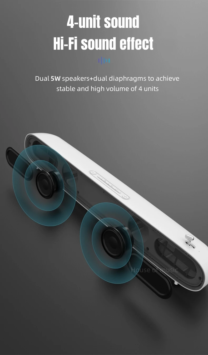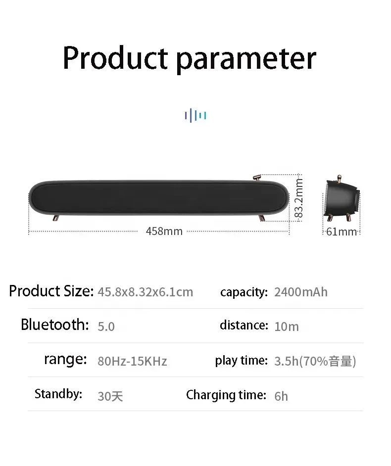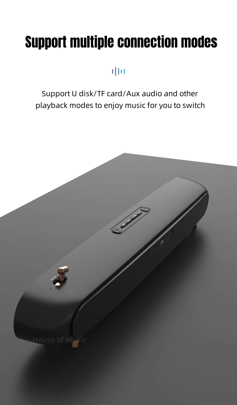 Upgrade your audio experience with this TV Soundbar – a sleek, compact, and portable Bluetooth speaker designed for home theater, PCs, laptops, and outdoor use. Equipped with a 3600mAh battery, this soundbar delivers powerful and crisp audio through 2.0 channel stereo sound.