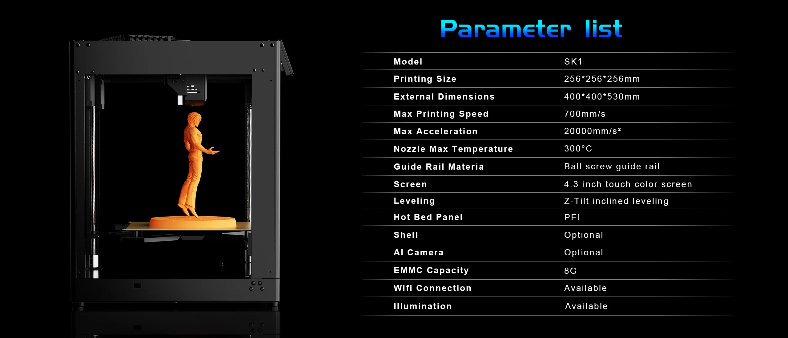 With a large build size of 256×256×256mm, a 300°C hotend, and a 100°C heated bed, it's ready to handle high-temperature, high-speed, and high-precision printing tasks.
