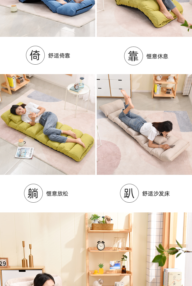 Inspired by Japanese tatami-style seating, it combines minimalist aesthetics with everyday practicality. The foldable recliner design lets you easily adjust or store it when not in use, ideal for compact spaces or cozy window nooks.