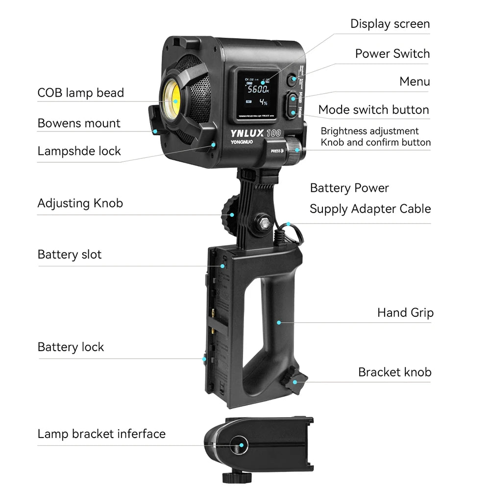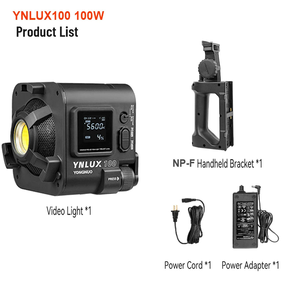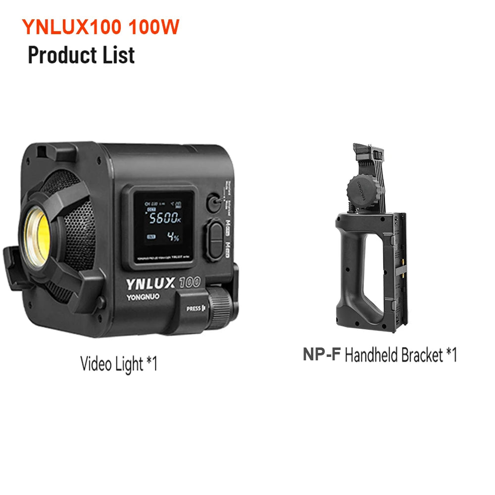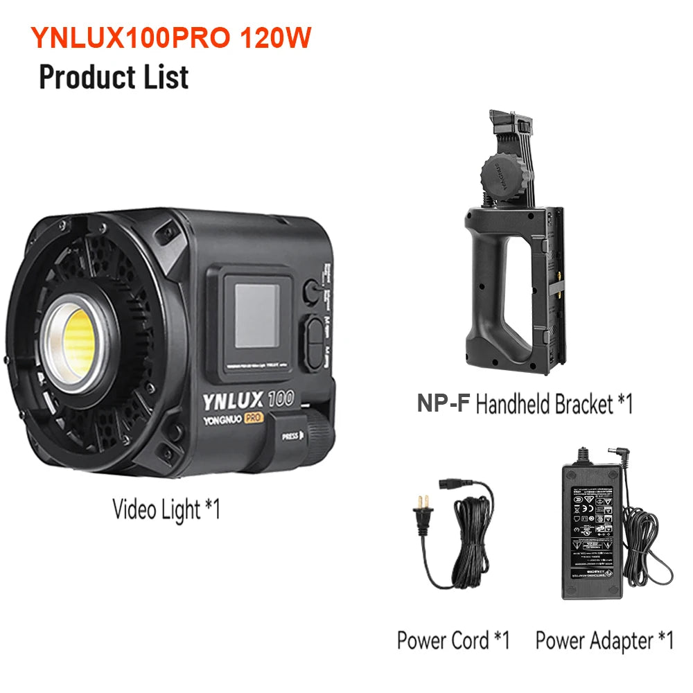 Purilite Select YNLUX100 PRO Handheld LED Video Light – 100W/120W Bi-Color COB Lamp 3200-5600K for DSLR & Outdoor Photography